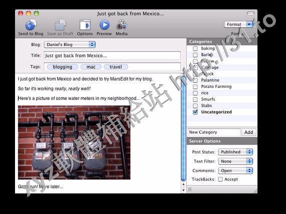 當然,重點還是可以發表文章。而使用MarsEdit,發表文章變的非常愜意。隨意書寫,調用